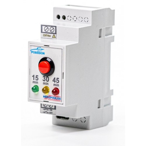 Με το πάτημα του κεντρικού μπουτόν του POSEIDON επιλέγουμε ανάμεσα σε 15min , 30min , 45min και OFF για την συνδεδεμένη συσκευή μας.
